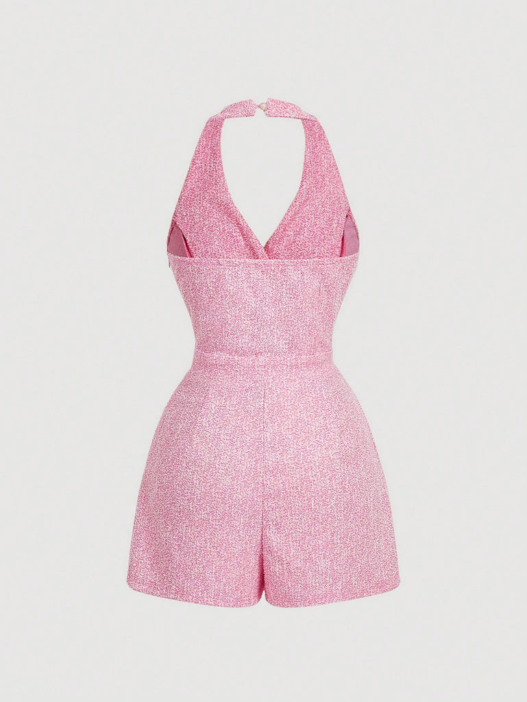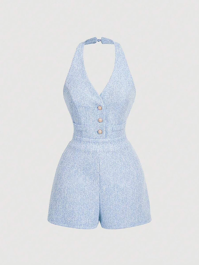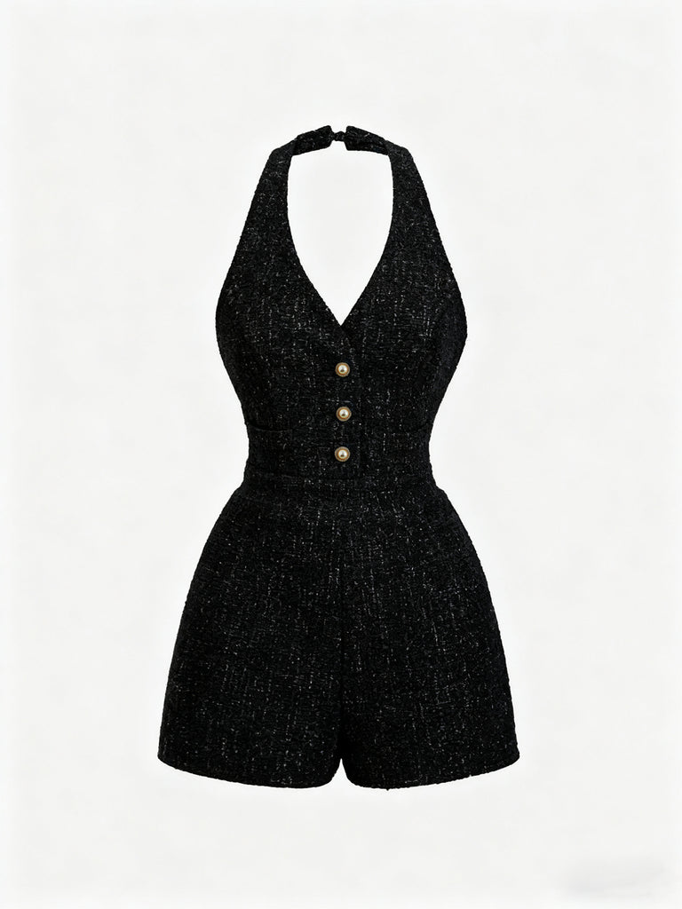 This Halter Neck Buttoned Tweed Romper combines classic tweed texture with a modern silhouette for versatile style. The halter neck offers a flattering fit, while the buttoned front adds a touch of refined detail. Ideal for occasions where comfort meets sophistication, this romper supports your look with ease and confidence throughout the day.